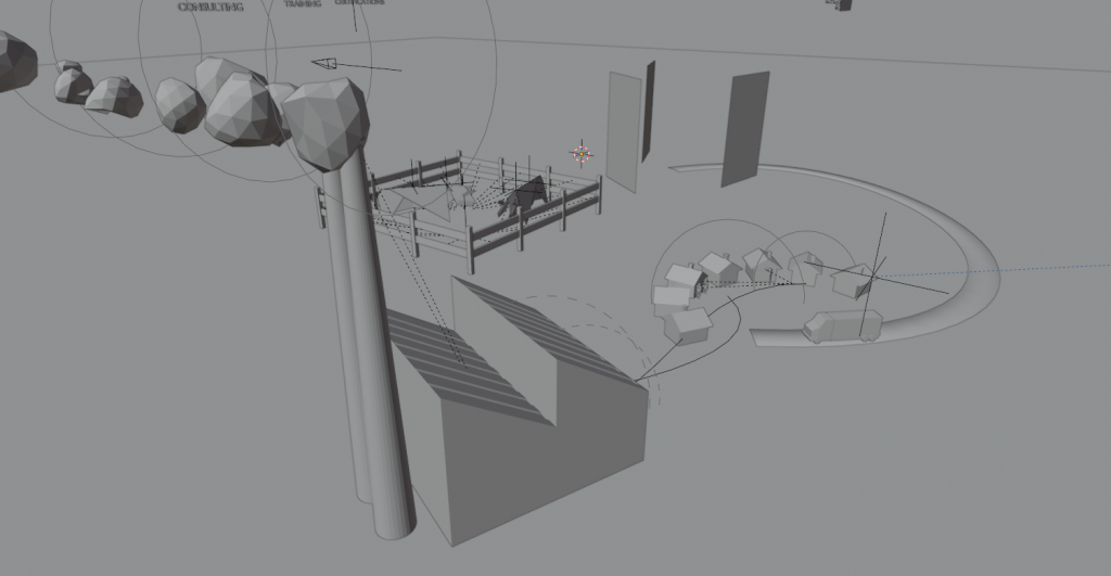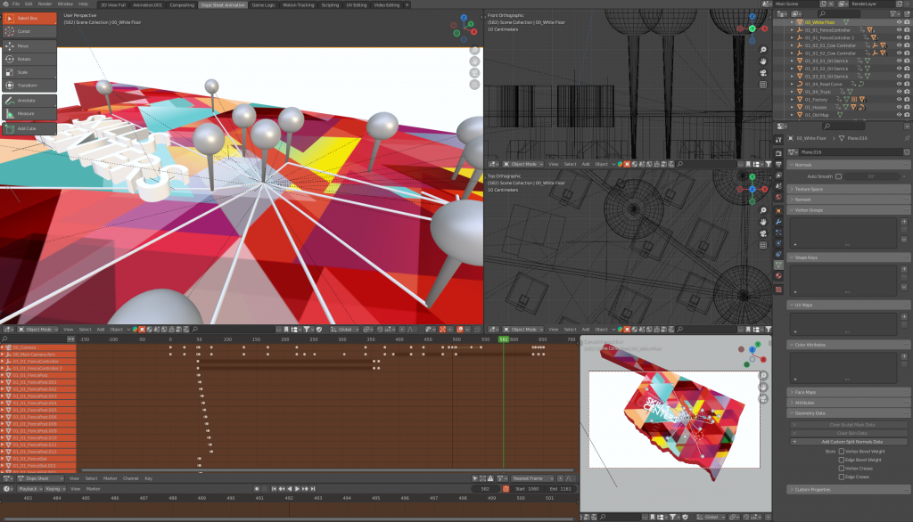 The entire video was hand modeled and animated, all the way from the paper cows and pop-up oil derricks, to the miniature people and buildings that populated the map. Additional post-production effects and compositing were produced within After Effects, making for a motion graphics piece entirely crafted by myself over the course of approximately a month, including all revisions.