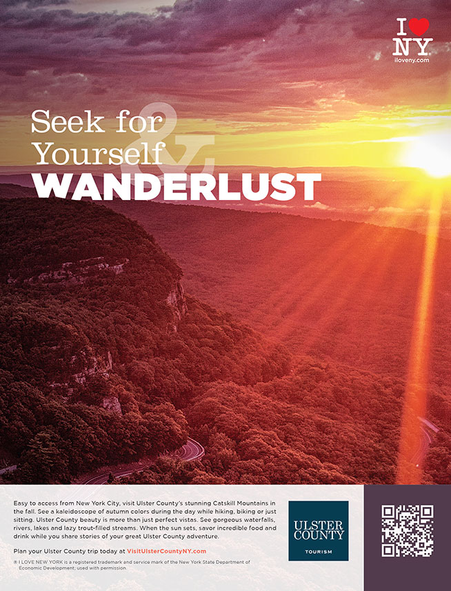 Located in up-state New York, Ulster County is a four-season playground that provides a welcome respite from the hustle and bustle of the big city. Combining outdoor experiences, both rustic and refined, with small-town hospitality and eccentricities, Ulster County invites every visitor to Seek for Yourself.