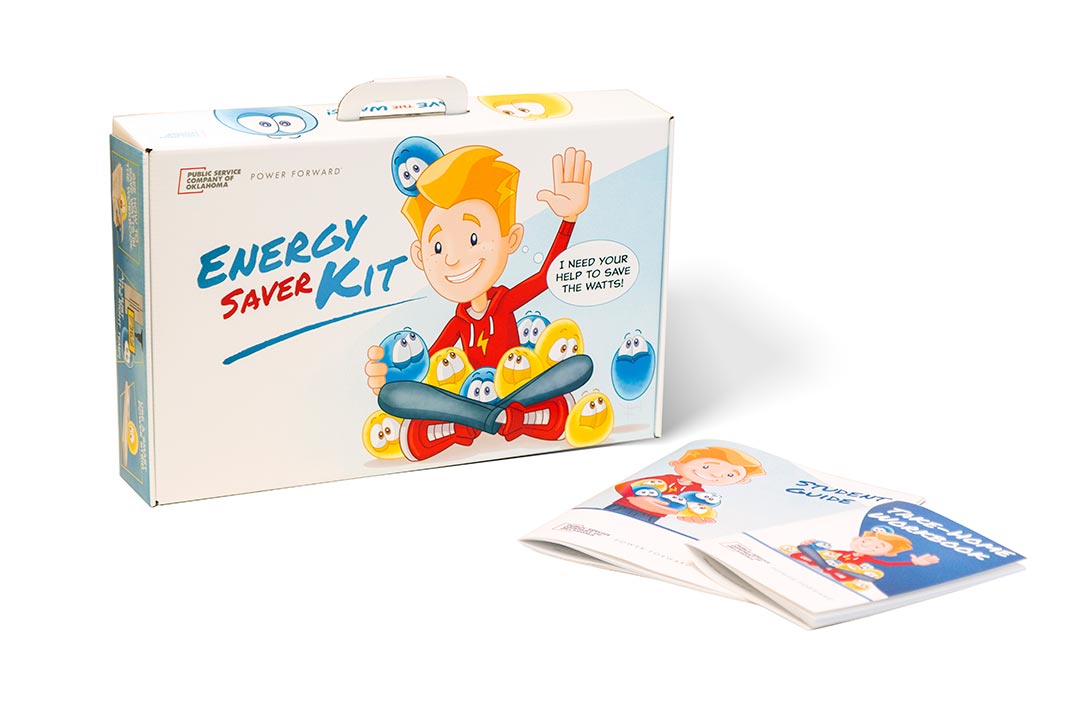Because of the universally appealing nature of The Watts, it was decided to integrate them with the existing character, Cade, who was always a mainstay of the Education Kits. These kits are provided to partner schools to teach about saving energy. An illustrator was commissioned to translate the realistic look of Watts and the existing Cade character into a cohesive visual style.